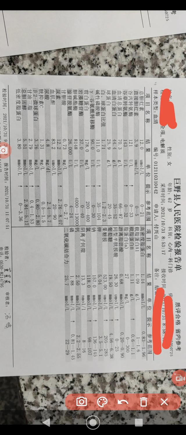 今天妈妈血常规检测结果出来了,确实不太好,怪不得妈妈吃饭都不愿意睁眼,医生说,糖尿病,肾也不好。我只看化验单上好多箭头。根据医生建议,已经安排住院了。